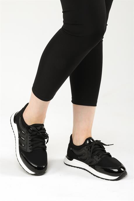 Attis Siyah Renkli Streç Deri Günlük Kullanım Rahat Yürüyüş Kadın Spor Ayakakbı