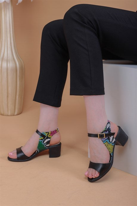 Besta Yılan Derisi Desenli Topuklu Ayakkabı