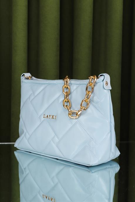 Cesato Açık Mavi Renkli Fermuarlı 3 Bölmeli Yumuşak Deri Kadın El Çantası