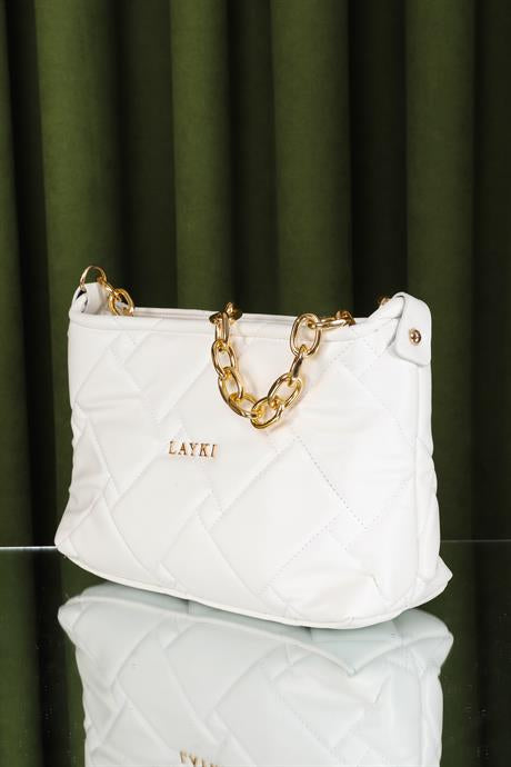 Cesato Beyaz Renkli Fermuarlı 3 Bölmeli Yumuşak Deri Kadın El Çantası