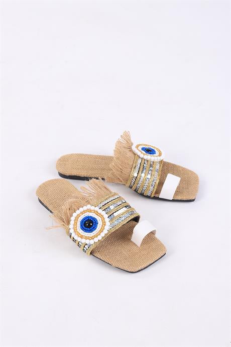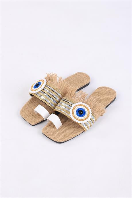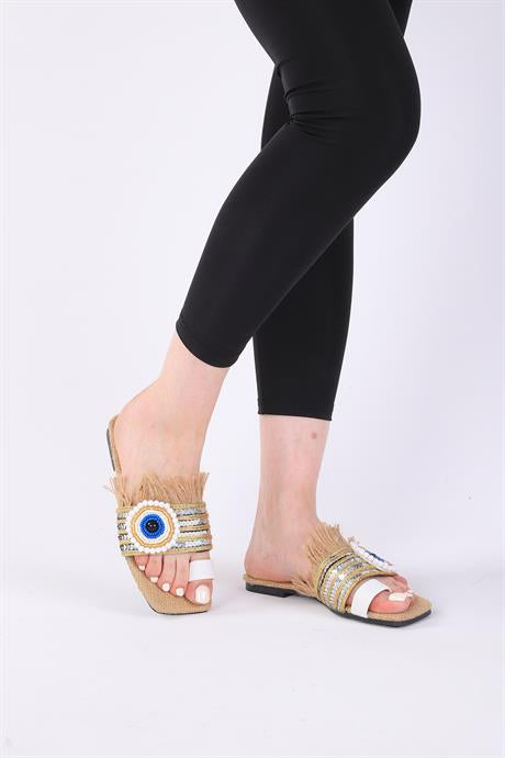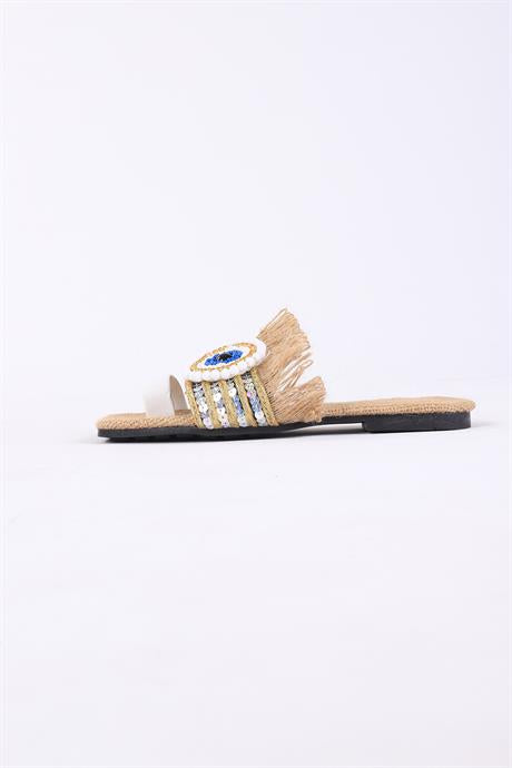 Clesse Beyaz Renkli Hasır Taşlı Terlik