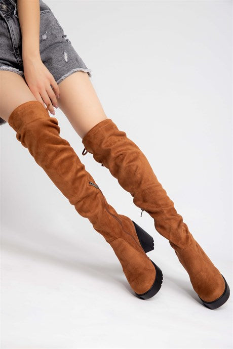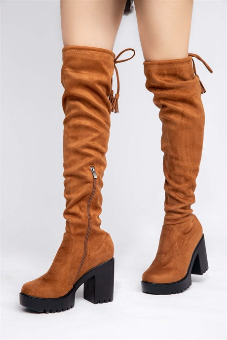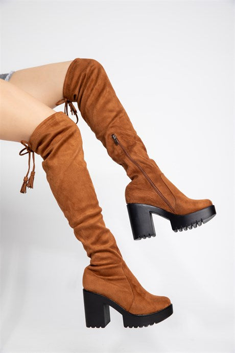 İnolyan Taba Renkli Süet Deri Uzun Çizme