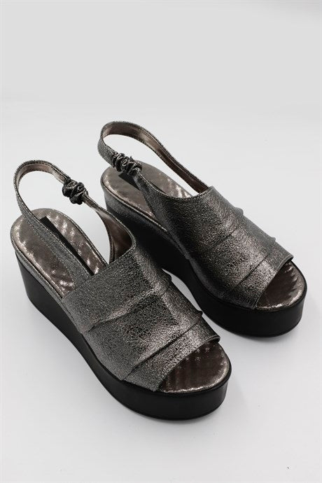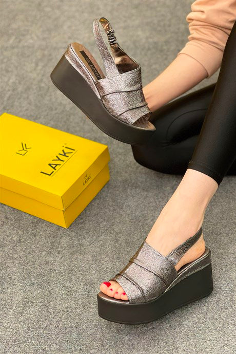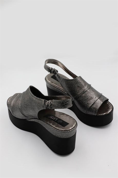 Lala Platin Renkli Arkadan Bilekli Topuğu Açık Kadın Topuklu Ayakkabı