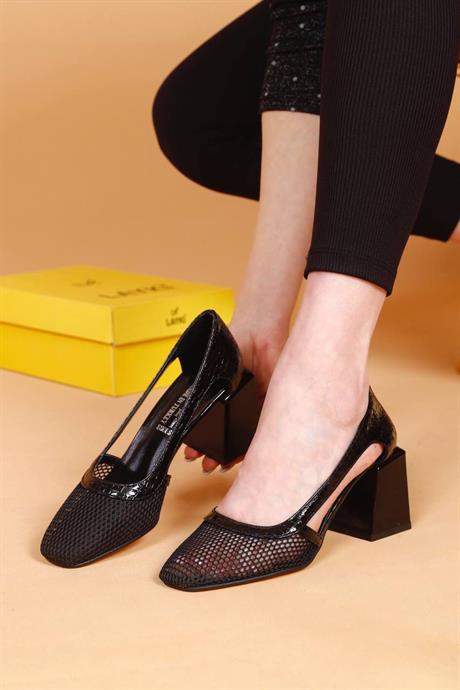 Layki Siyah Dantelli Dolgu Topuklu Ayakkabı