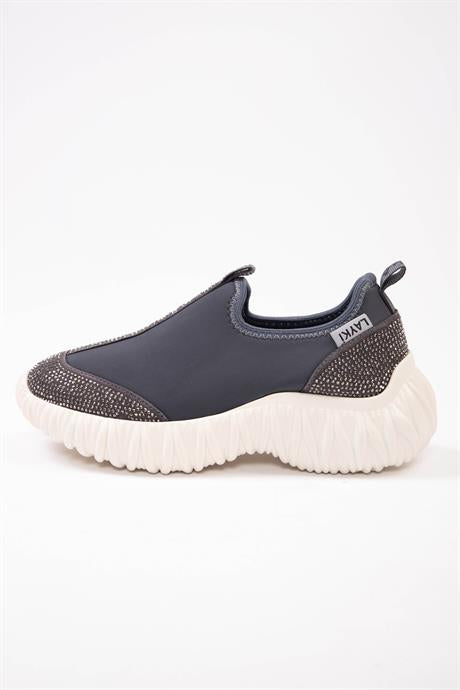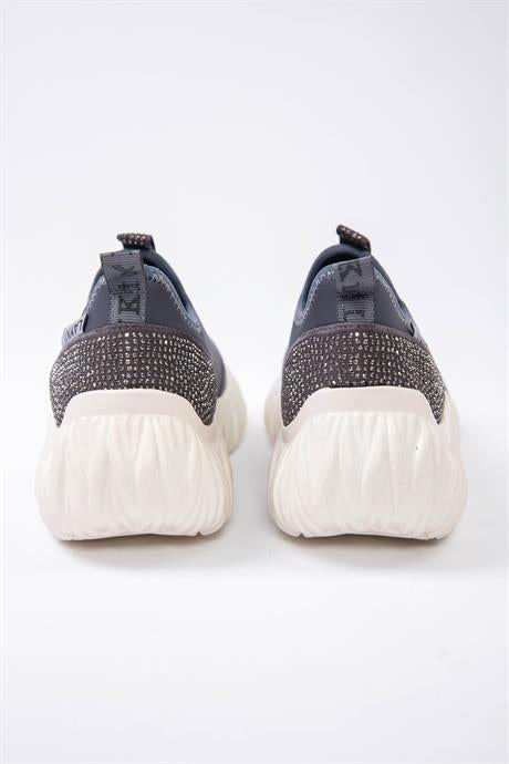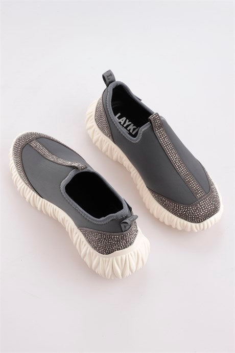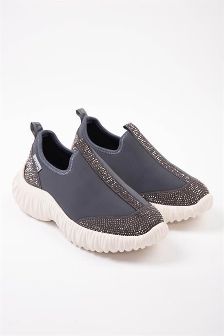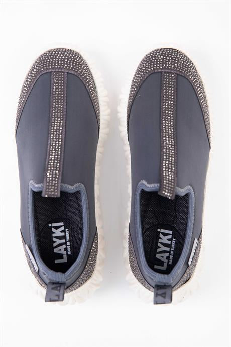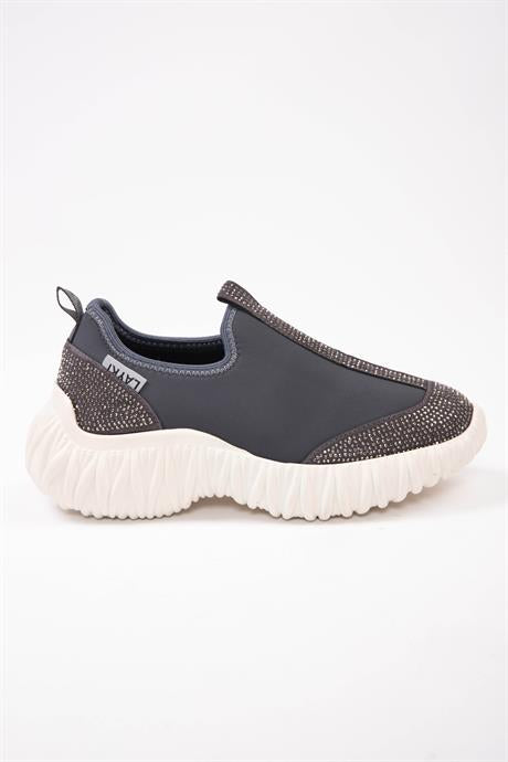 Lucas Gri Renkli Siyah Parlak Taş Detaylı Lux Kadın Spor Ayakkabı