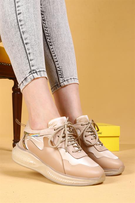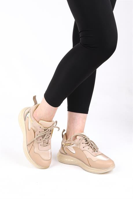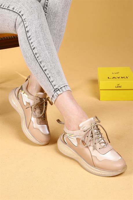 Miora Bej Renkli Şeffaf Tabanlı Paraşüt Kumaşlı Kışlık Kadın Yürüyüş Ayakkabısı