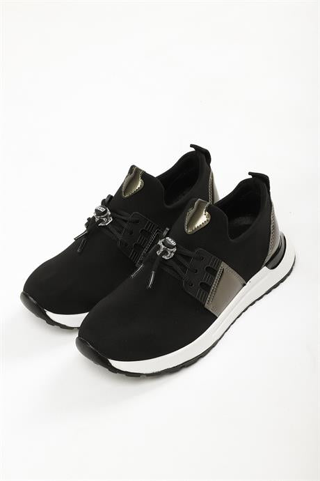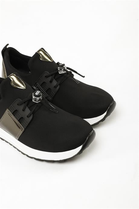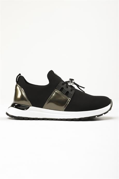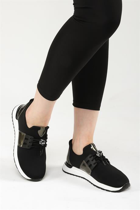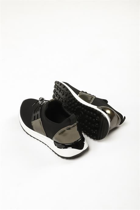 Mista Siyah Platin Renkli Streç Deri Günlük Kullanım Rahat Yürüyüş Kadın Spor Ayakakbı