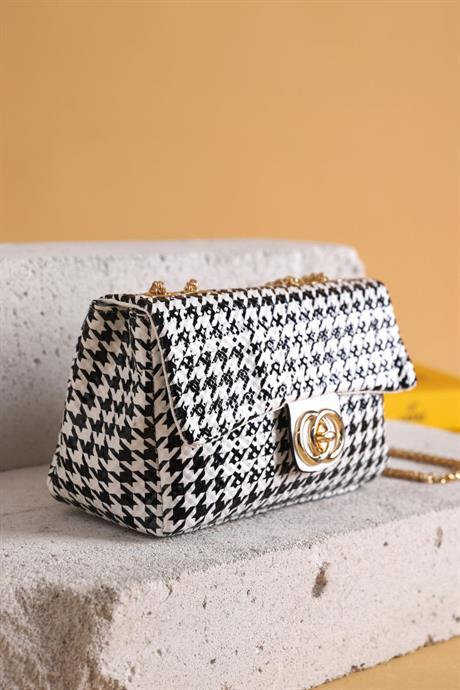 Pera Beyaz Siyah Renkli Bölmeli Askılı Çanta