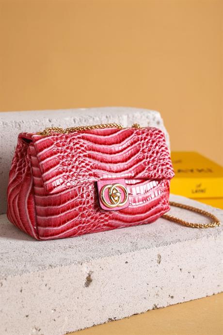 Pera Fuşya Renkli Desenli Bölmeli Askılı Çanta
