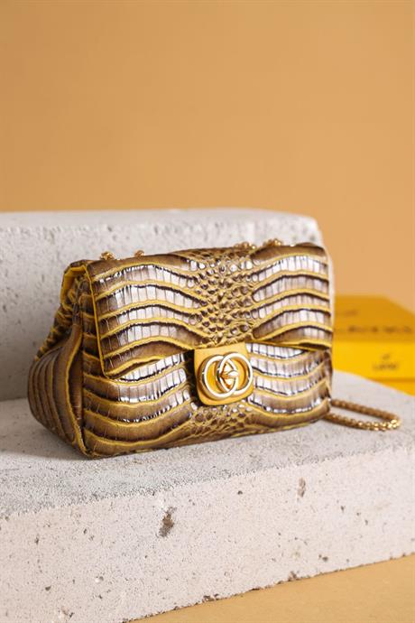 Pera Sarı Renkli Desenli Bölmeli Askılı Çanta