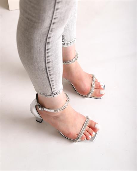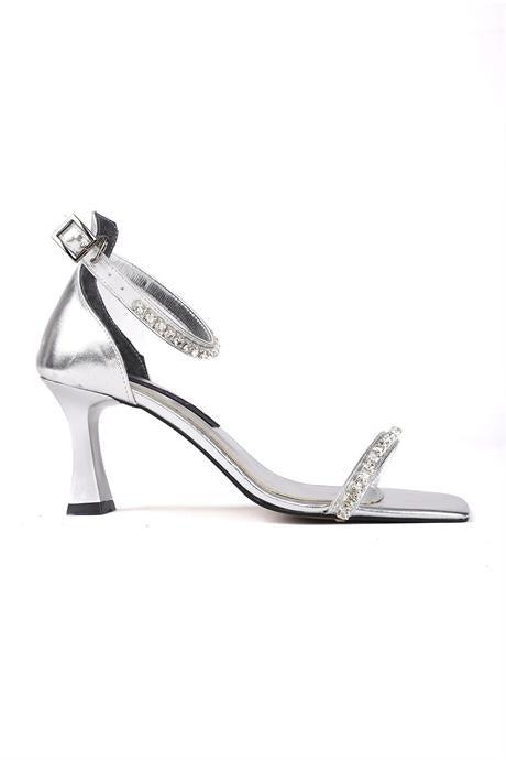Sirea Gümüş Taş Detay Kadın Topuklu Ayakkabı
