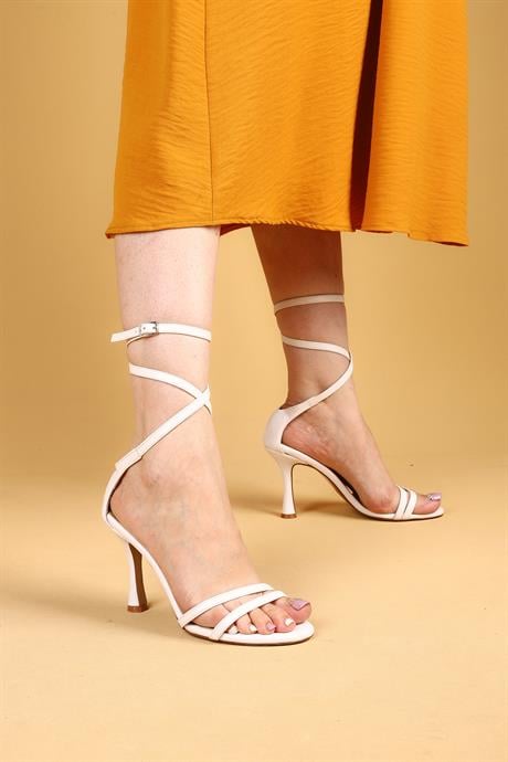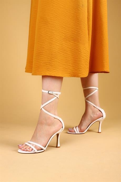 Stellar Beyaz Renkli Bağlamalı Yüksek Topuklu Ayakkabı
