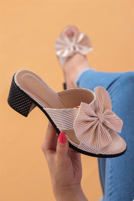 Suzie Bej Renkli Önü Fiyonklu Kadın Kısa Topuklu Ayakkabı