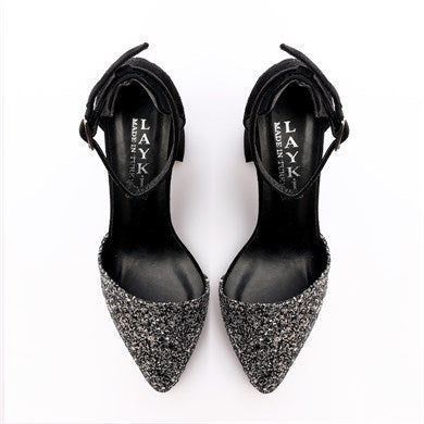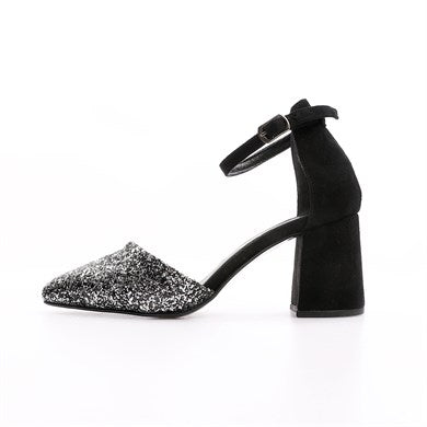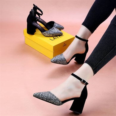 William Siyah Renkli Kısa Topuklu Taşlı Kadın Topuklu Ayakkabı